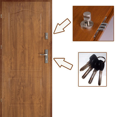 Powierzchnię drzwi uszlachetniono folią PCV 0,35 mm zabezpieczającą drzwi przed negatywnym wpływem wilgotności oraz uszkodzeniami mechanicznymi.