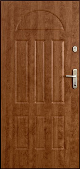 Drzwi panelowe wzmocnione Gerda WX 10 są stosowane jako drzwi wejściowe do mieszkań, apartamentów, oraz innych pomieszczeń wewnątrz budynków. Zastosowane panele ozdobne w kolorach naturalnego drewna nadają tym drzwiom estetyczny wygląd.